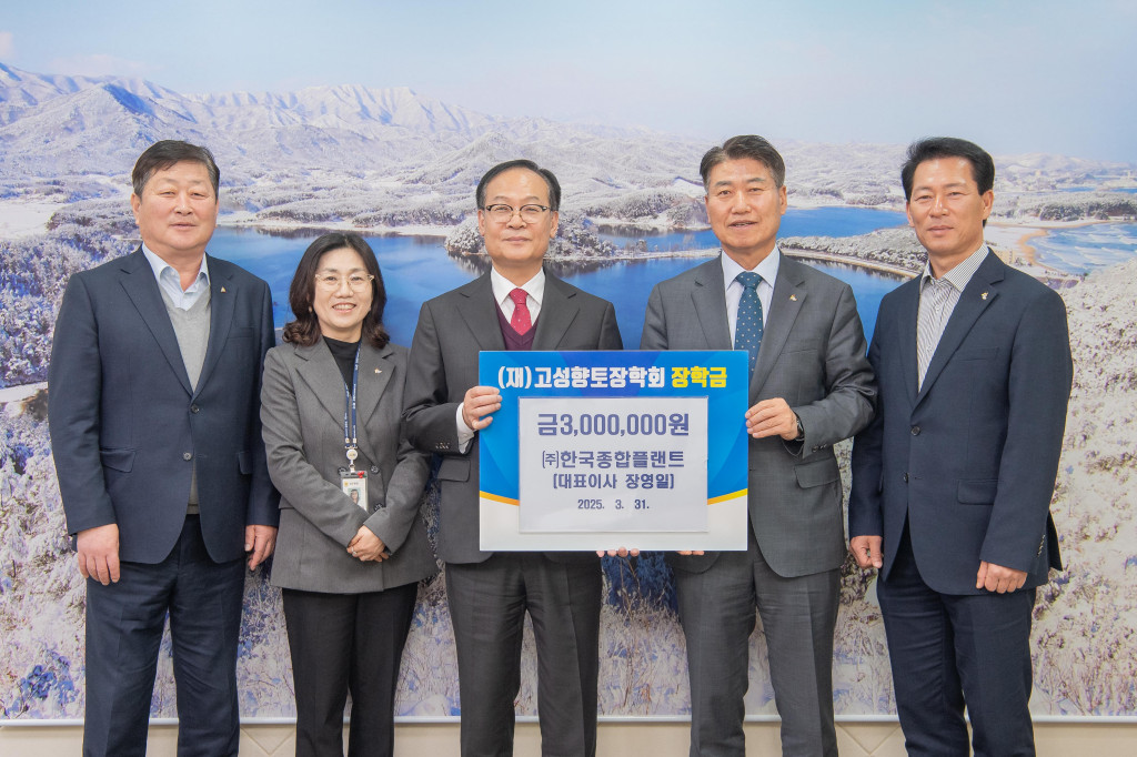 Korea Comprehensive Plant Co., LTD. (CEO Jang Young-il) donated scholarships to Goseong-gun, Gangwon-do, to foster local talent and improve the educational environment.